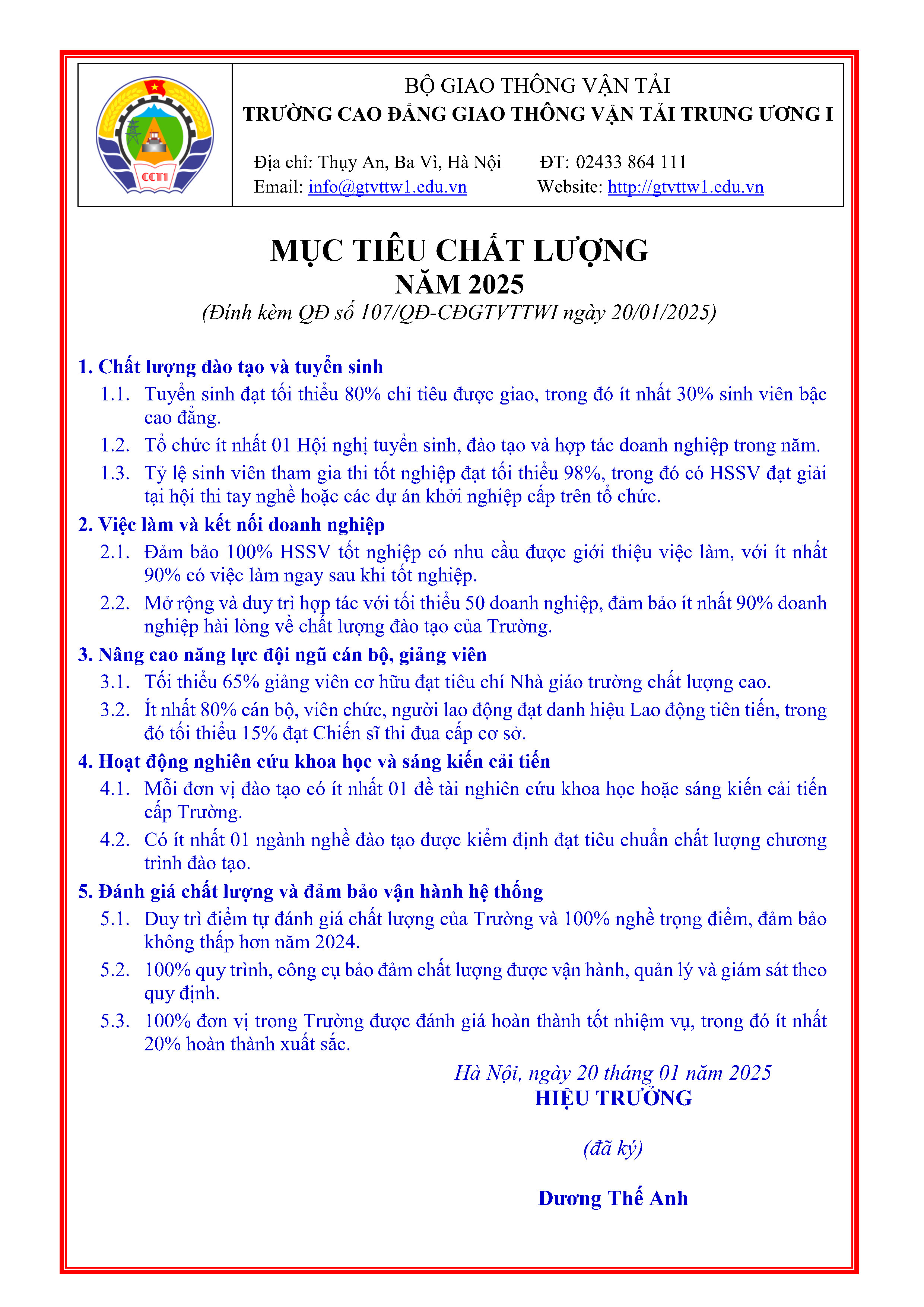 Mục tiêu chất lượng năm 2025,Muc tieu chat luong nam 2025