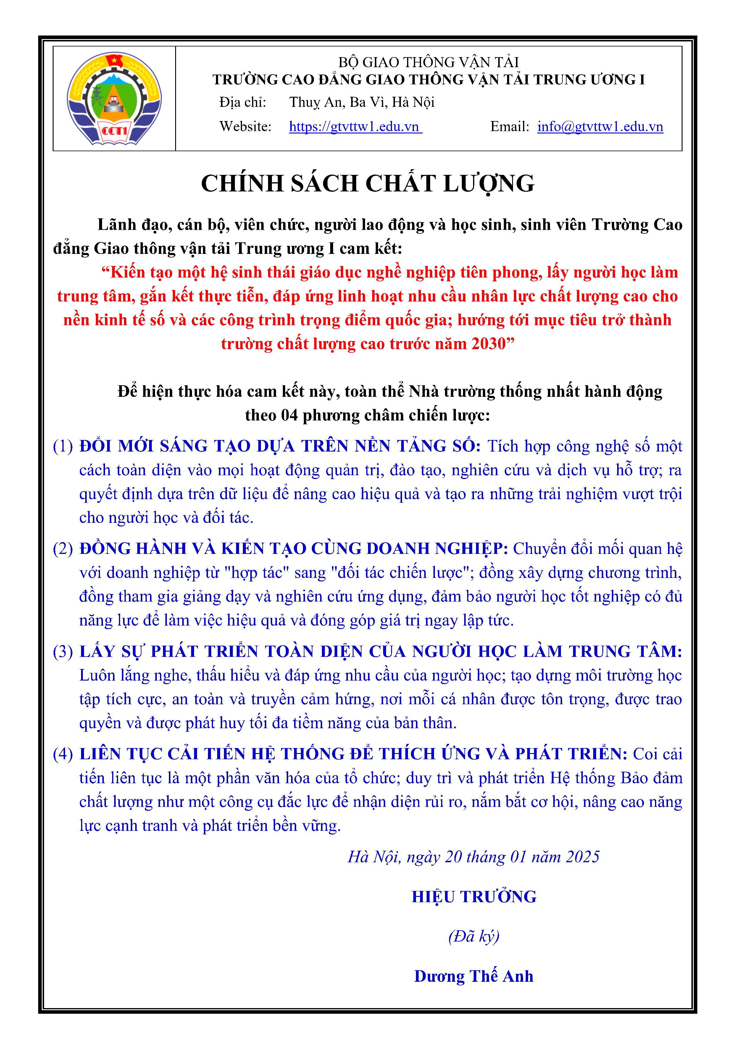 Chính sách chất lượng của Trường,Chinh sach chat luong cua Truong
