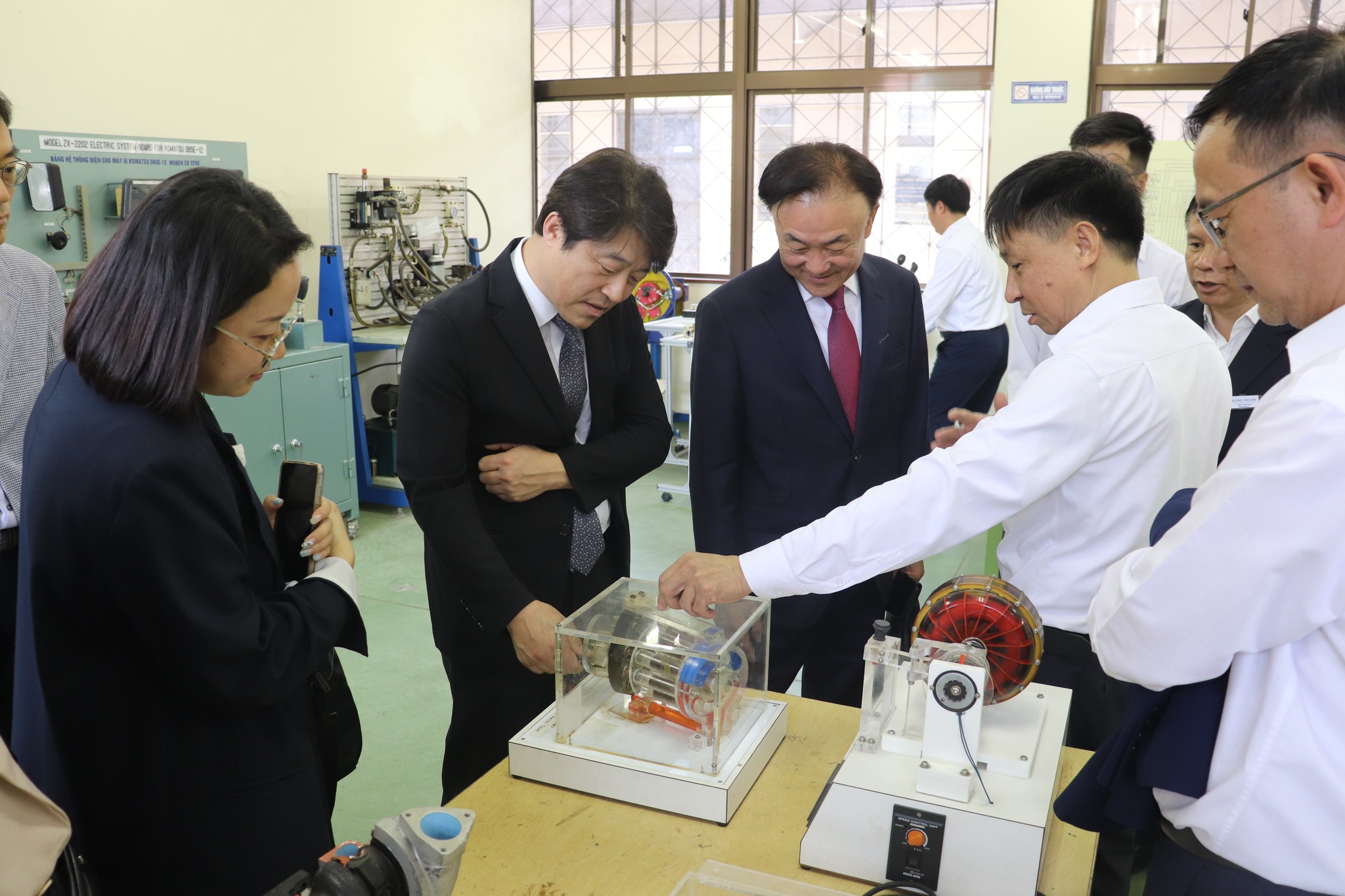 Trong khuôn khổ chương trình, đoàn công tác Đại học Gumi đã tham quan cơ sở vật chất, hệ thống phòng học, xưởng thực hành của Nhà trường. Qua đó, đoàn đánh giá cao môi trường đào tạo gắn với thực tiễn sản xuất, phù hợp với định hướng hợp tác đào tạo kỹ thuật giữa hai bên.