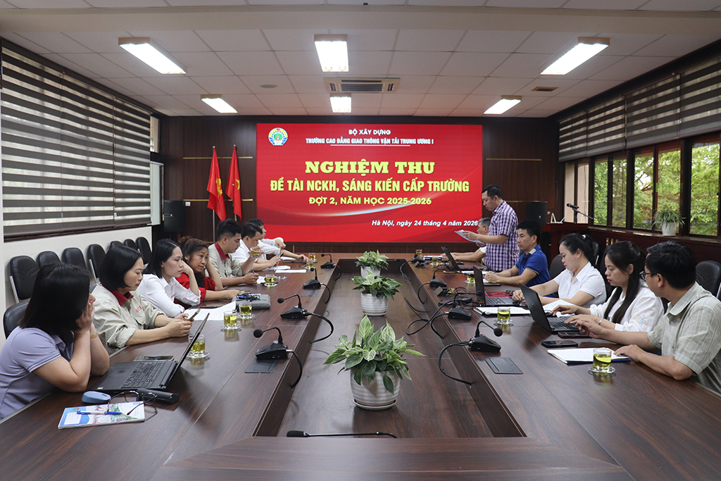 Ngày 24/4/2026, Trường Cao đẳng GTVT Trung ương I tổ chức nghiệm thu các đề tài nghiên cứu khoa học (NCKH), sáng kiến cải tiến cấp Trường năm học 2025–2026 (đợt 2) tại phòng hội thảo. Hoạt động nhằm đánh giá kết quả nghiên cứu, khẳng định hiệu quả ứng dụng và thúc đẩy phong trào nghiên cứu khoa học trong cán bộ, giảng viên nhà trường.