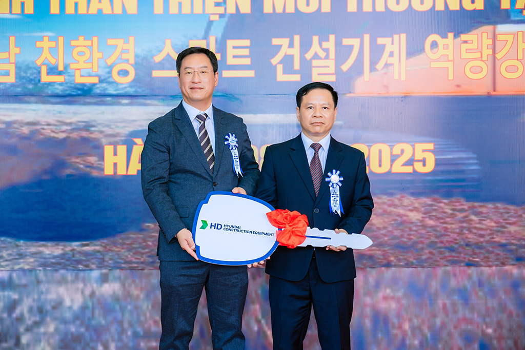 Đại diện lãnh đạo CCT1 và HD- Hyundai chụp ảnh lưu niệm bên thiết bị đầu tiên được bàn giao