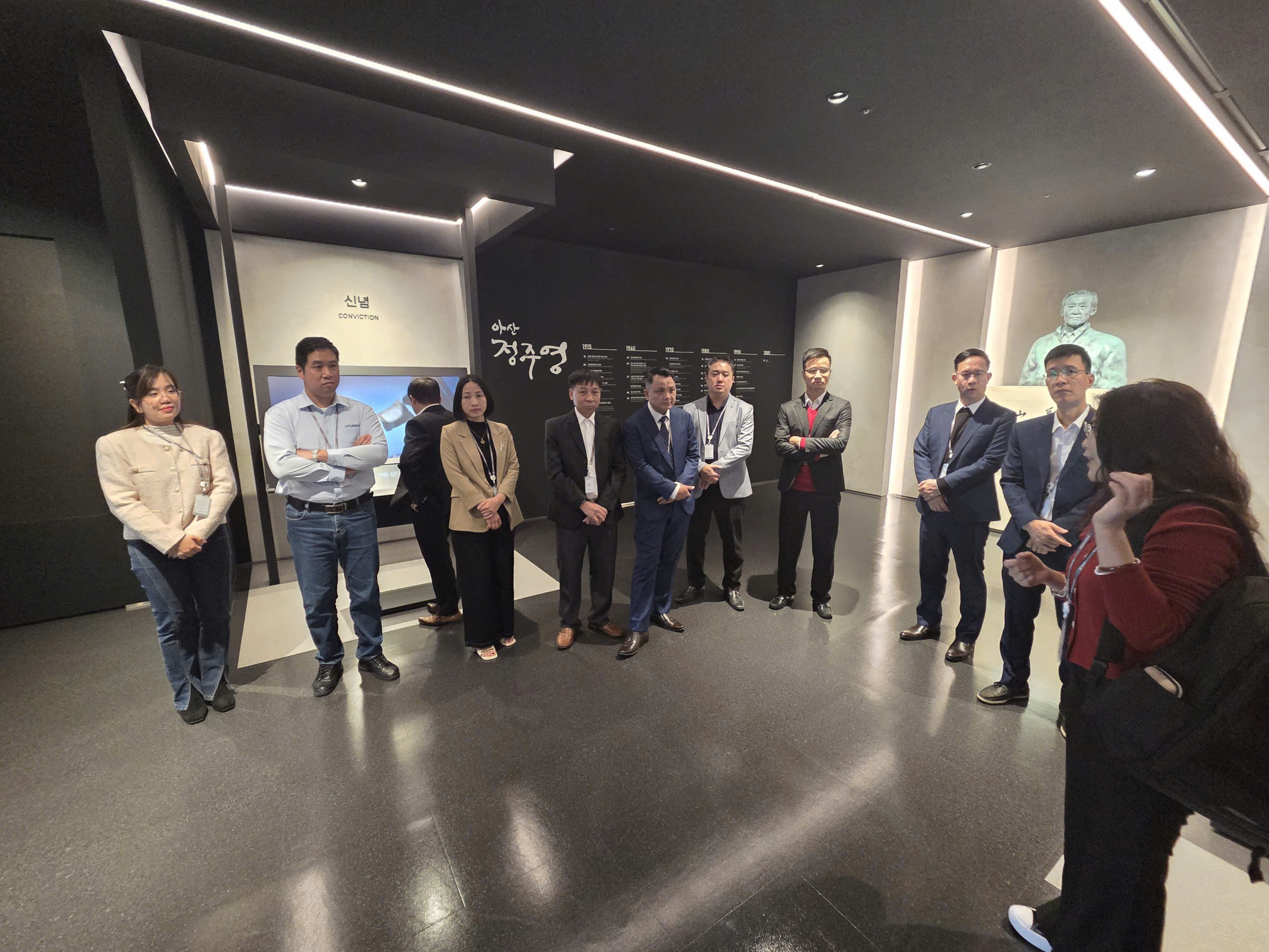 - Giao lưu văn hóa và tìm hiểu lịch sử: Chuyến đi còn là hành trình khám phá văn hóa và tinh thần doanh nghiệp. Qua việc thăm quan phòng truyền thống, đoàn đã hiểu rõ hơn về lịch sử phát triển của tập đoàn Hyundai, về triết lý phát triển "Develon" (kết hợp từ "Develop" - Phát triển và "Onwards" - Hướng về phía trước) của Hyundai, một động lực truyền cảm hứng cho sự đổi mới không ngừng. Những món quà lưu niệm mang đậm bản sắc dân tộc đã thắt chặt thêm tình hữu nghị giữa hai quốc gia.