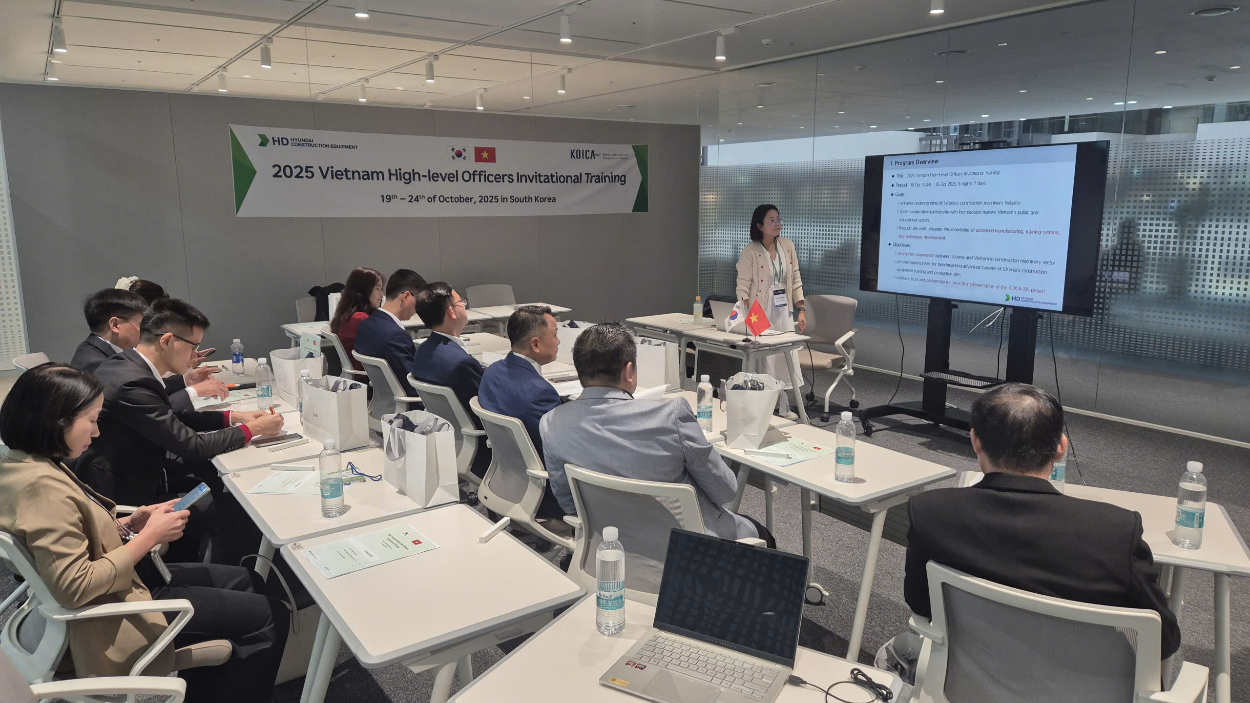 Chuyến đi được thực hiện nhằm mục đích làm việc trực tiếp với Công ty Thiết bị máy xây dựng HD Hyundai, khảo sát mô hình đào tạo, đồng thời tham dự chuỗi Hội thảo quốc tế về "Thiết bị xây dựng xanh". Đây là hoạt động thiết thực, tạo nền tảng vững chắc cho việc triển khai hiệu quả Dự án được phê duyệt tại Quyết định số 1685/QĐ-BXD ngày 03/10/2025 của Bộ trưởng Bộ Xây dựng.