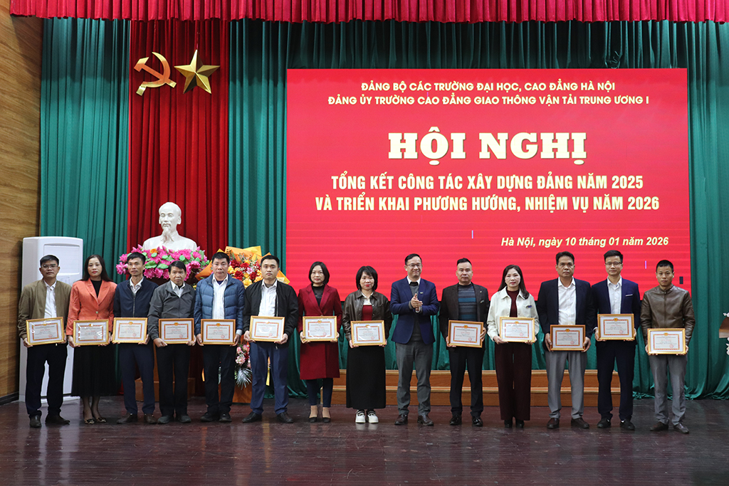 Sáng 10/01/2026, Đảng ủy Trường Cao đẳng Giao thông vận tải Trung ương I tổ chức Hội nghị tổng kết công tác Đảng năm 2025 và triển khai phương hướng, nhiệm vụ năm 2026, với sự tham dự của toàn thể đảng viên trong Đảng bộ.